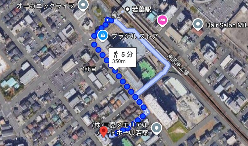 東武東上線「若葉駅」のすぐ近くに位置しています。